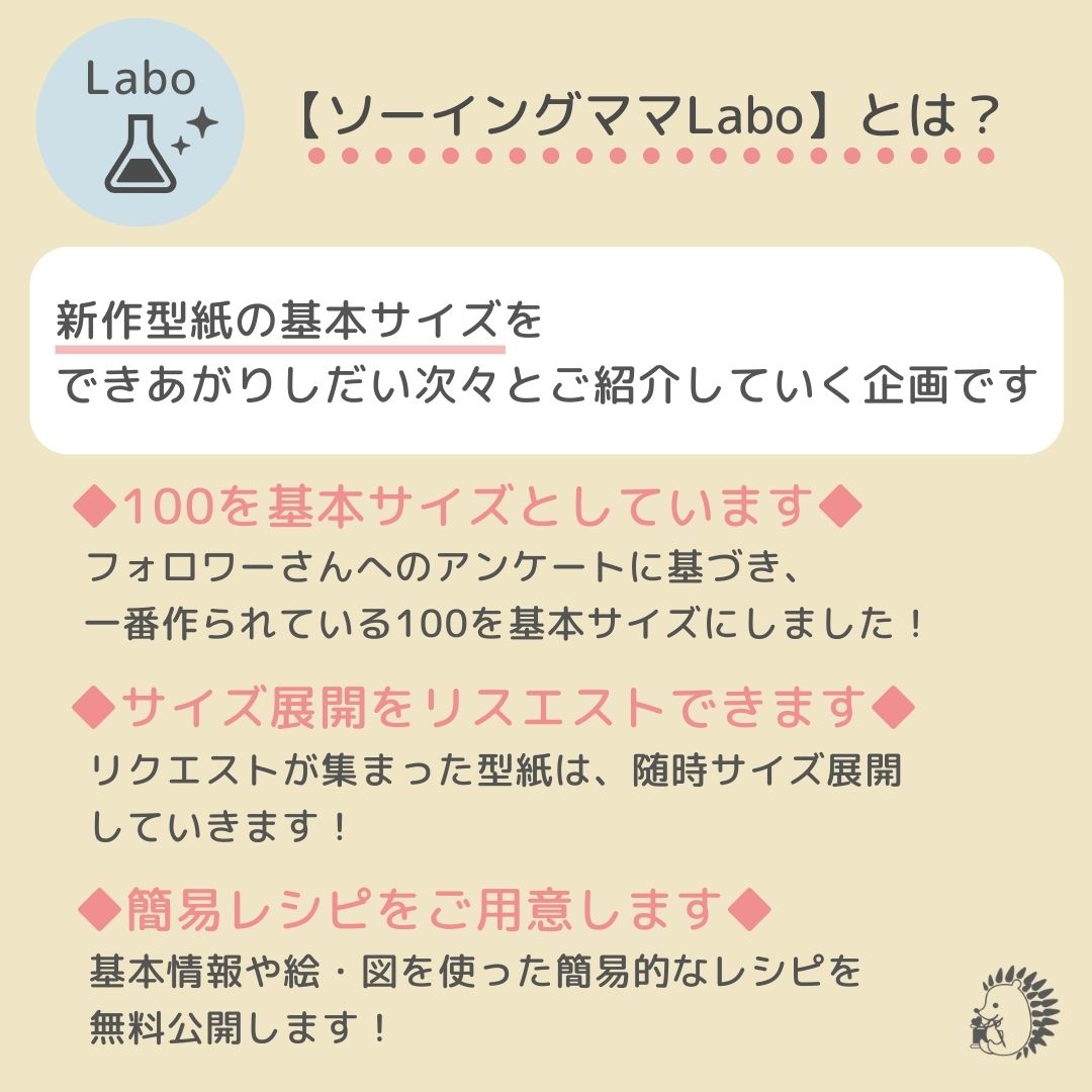 ※ソーイングママの型紙は、独自のサイズ基準をもとに作成しております。